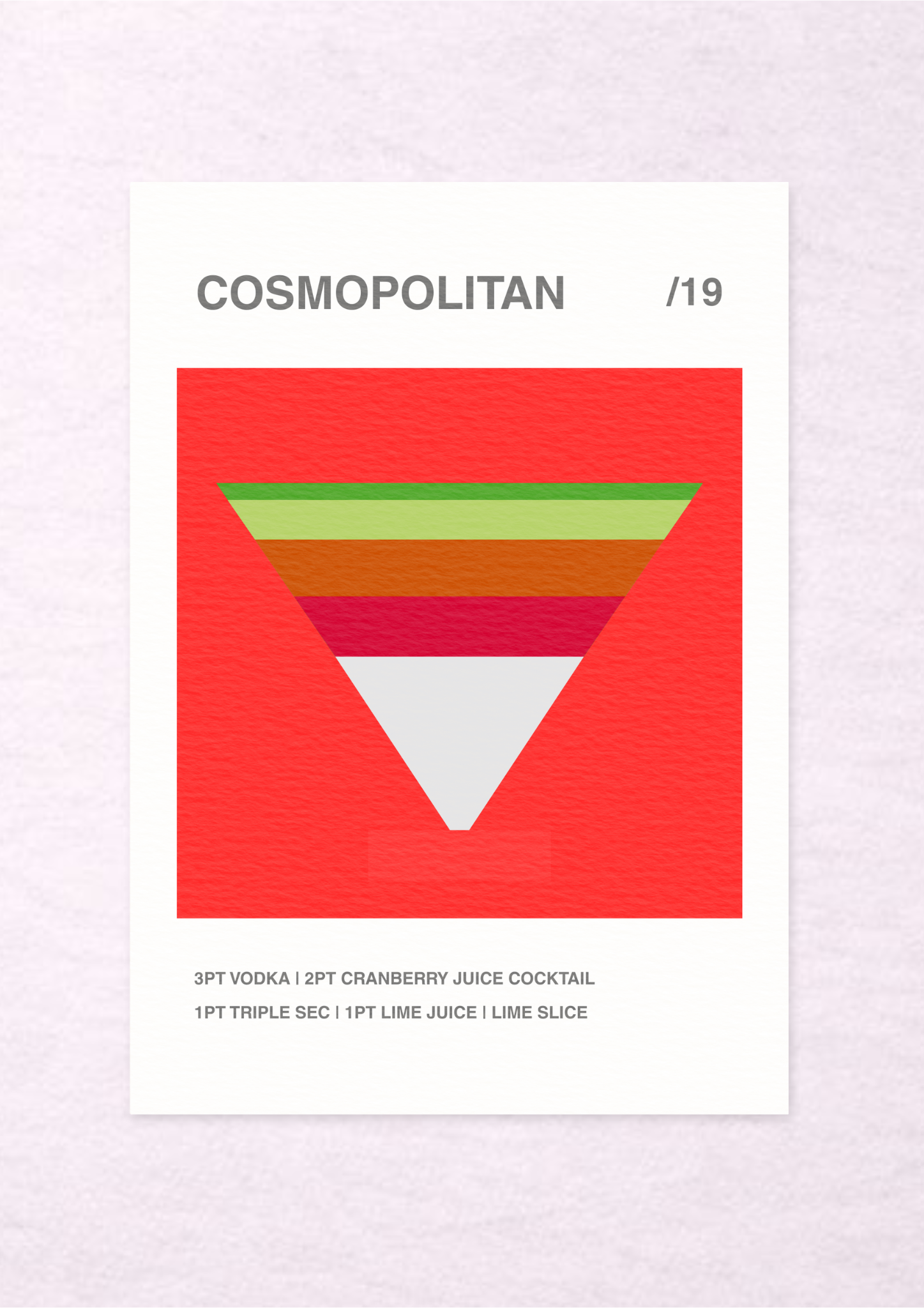 Part of Blocktails, the block-colour cocktail print series, Cosmopolitan /19 is sharp, graphic and unapologetically modern - a composition built on contrast and confidence.