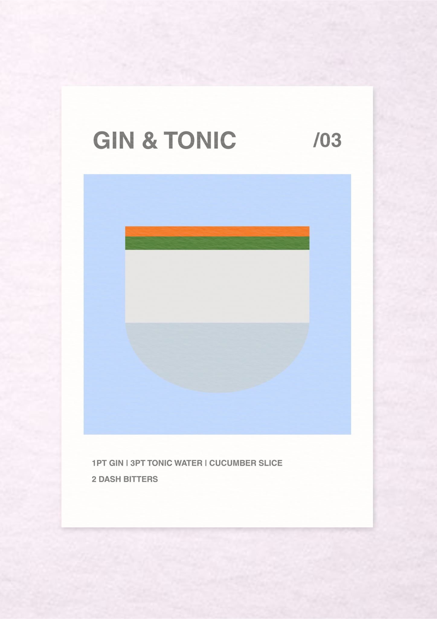 Gin & Tonic /03 brings clarity and restraint to Blocktails, the block-colour cocktail print series - a study in refreshment, simplicity and modern ritual.