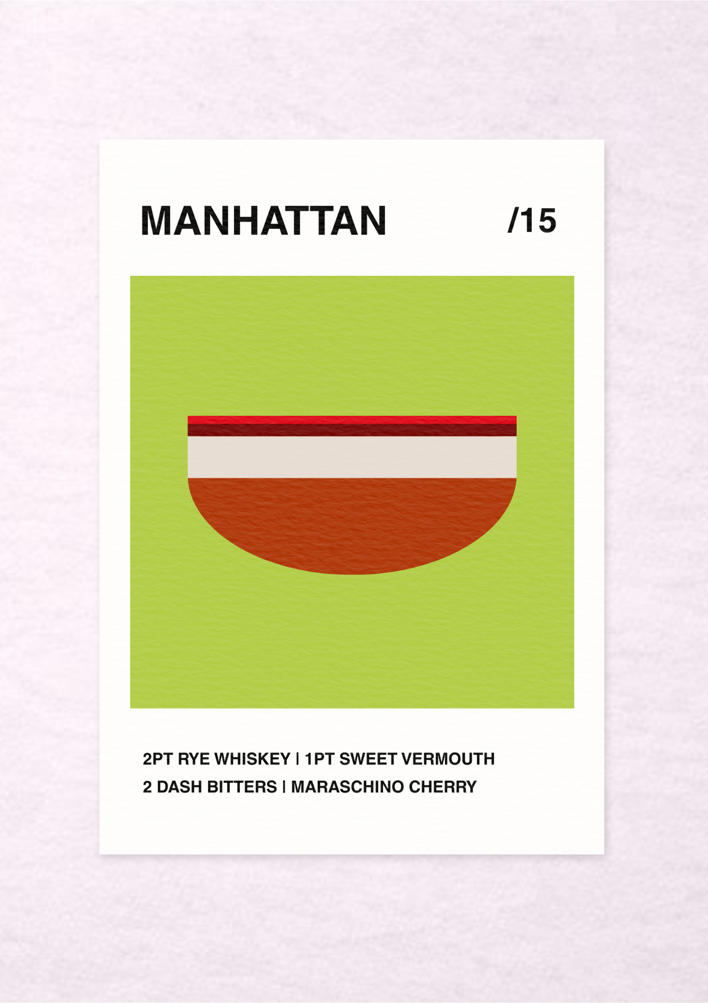 Part of Blocktails, the block-colour cocktail print series, Manhattan /15 is dense and horizontal - a low, deliberate composition that carries weight without excess.
